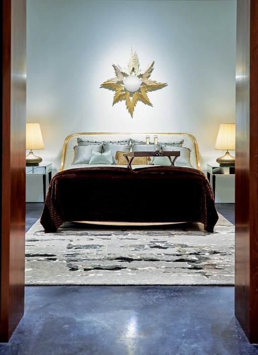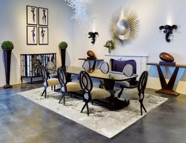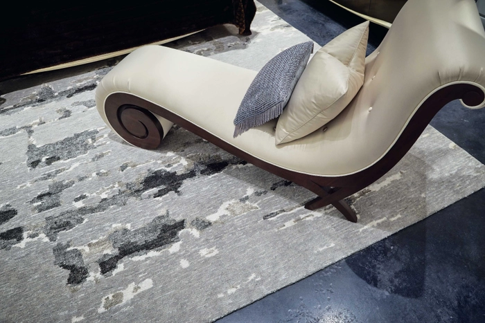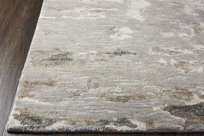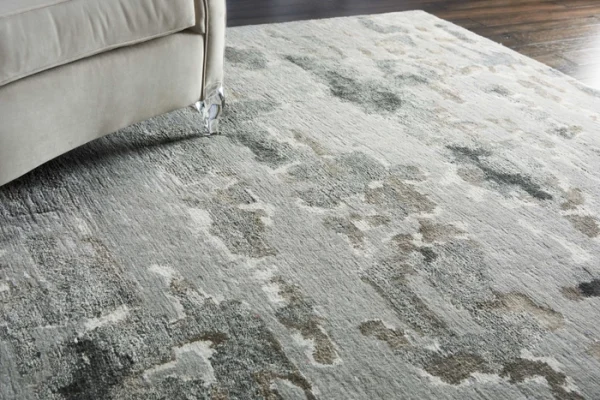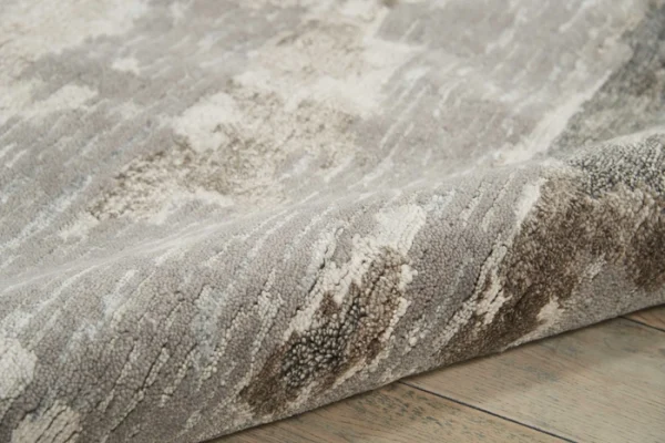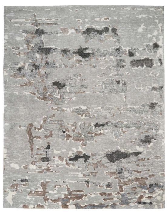 Deep mink and truffle detailing create a harmonious feel in this wool linen silk bamboo blended rug.