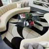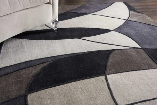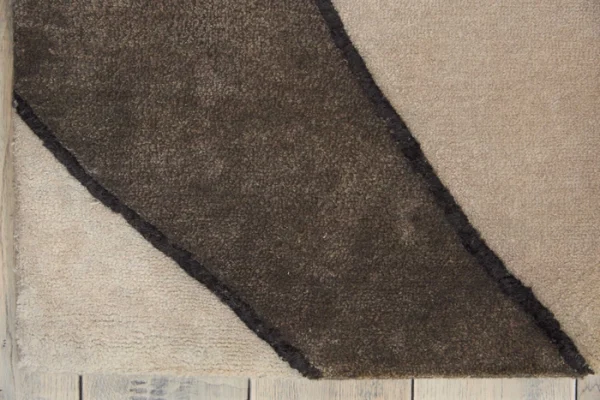 Rich warm tones ofmink browns, Mediterranean sands, and chic greysblend together effortlessly in this cubistdesign of wool and silk.