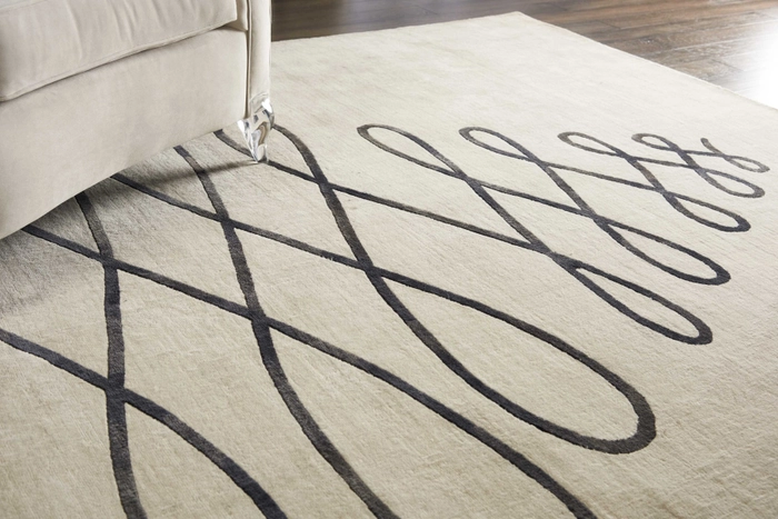 Soft greys and sea sands bring this period scroll design to life in this wool and silk rug.
