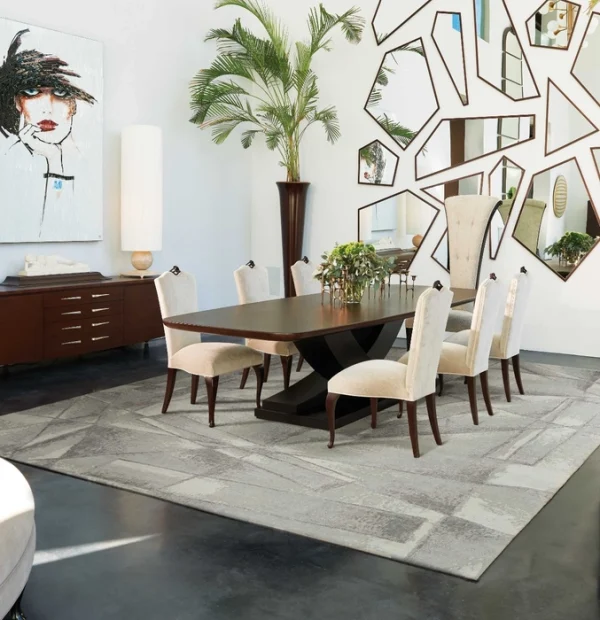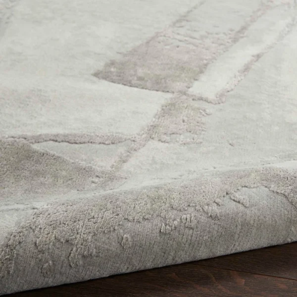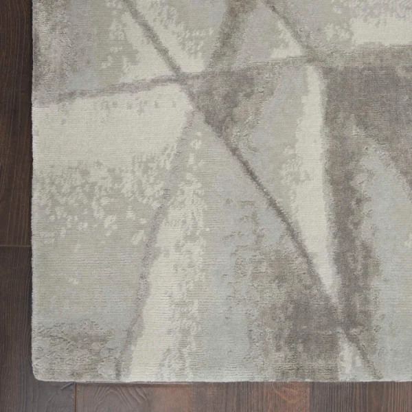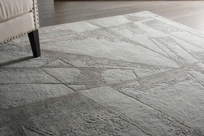The ombre grey abstract design of this Christopher Guy rug reflect cubist influences reminiscent of a Picasso painting. Soft greys and pale seafoam tones on pure New Zealand wool feature subtle carved texture that reflect contemporary refinement along with unsurpassed quality and durability.