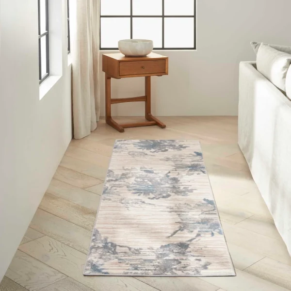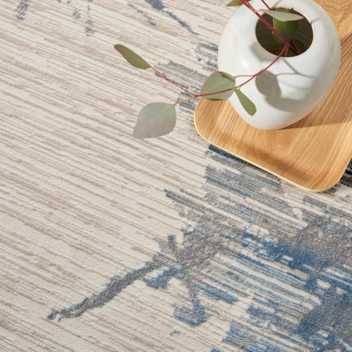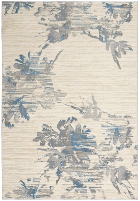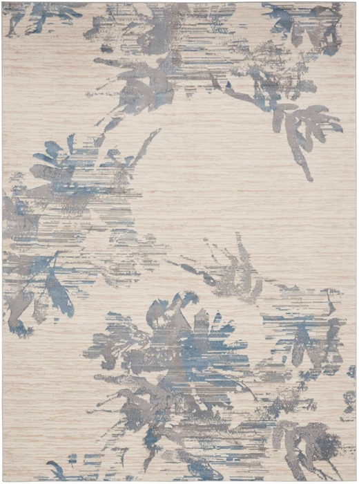 This masterful design from the Calvin Klein Enchanting Collection adds a modern sensibility to the contemporary home. In sophisticated neutral tones of ivory, grey and blue with a high-low cut pile, this abstract floral rug brings textural interest into your living space. A unique choice for your living room, bedroom, or home office in an easy to clean, modern fiber blend.