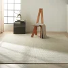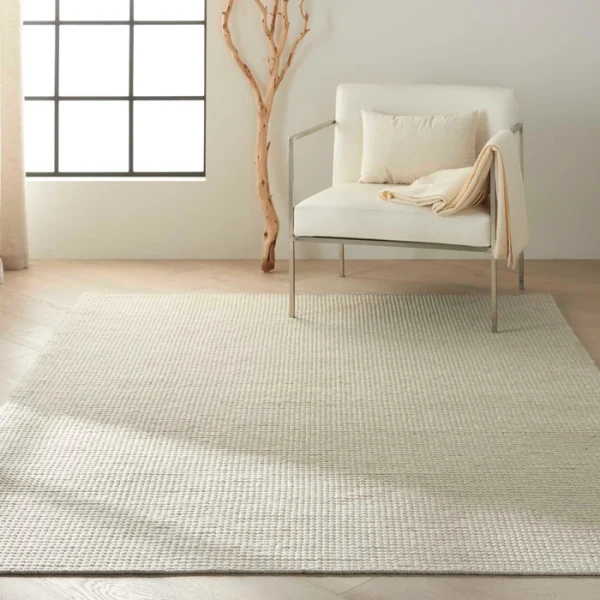 In cool grey and white tones, this hand woven natural Calvin Klein Lowland wool area rug merges understated color with striking design and a stunning surface texture to offer a modern, minimalist layer of laidback luxury to any interior.