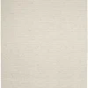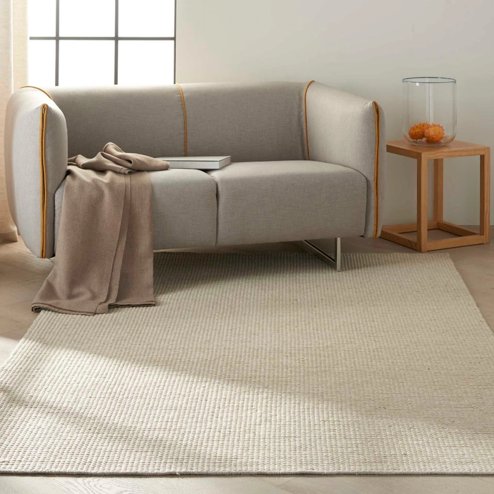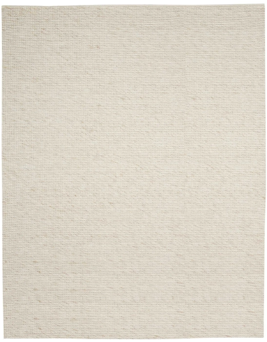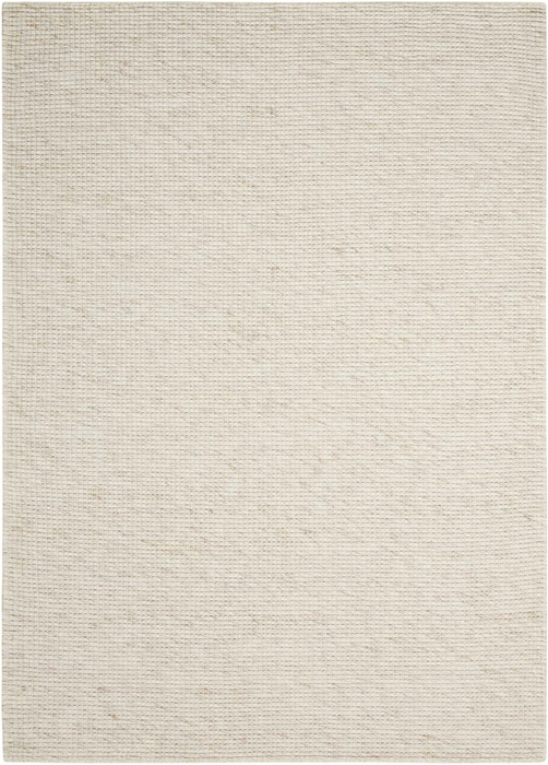 In creamy ivory and white tones, this hand woven natural Calvin Klein Lowland wool area rug merges understated color with striking design and a stunning surface texture to offer a modern, minimalist layer of laidback luxury to any interior.