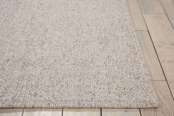 A peaceful shade of mica emphasizes the arresting textural traits of this stunning hand-loomed Tobiano rug fabricated from a custom blend of innovative fibers to reflect the streamlined sophistication of Calvin Klein Home.