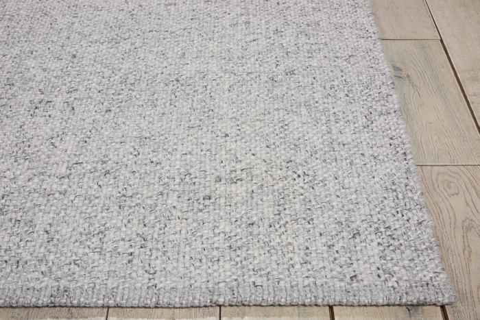 A soothing shade of silver emphasizes the arresting textural traits of this stunning hand-loomed Tobiano rug fabricated from a custom blend of innovative fibers to reflect the streamlined sophistication of Calvin Klein Home.
