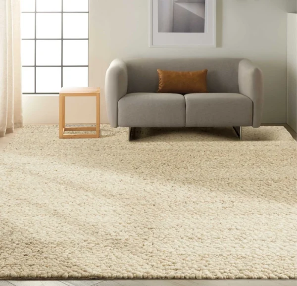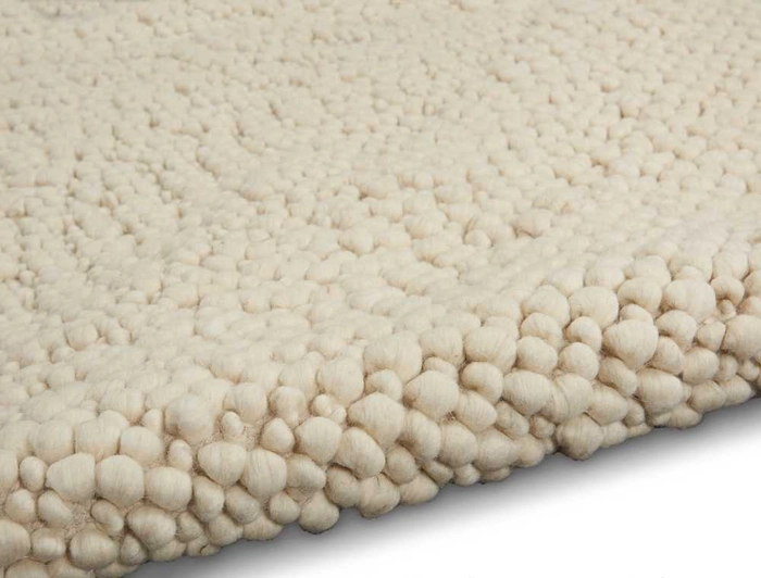 Traditional Berber weaving gets a contemporary upgrade in this large-loop area rug from the Calvin Klein Riverstone Collection. The uniquely thick pebble weave creates a beautiful look and feel, with delicious texture and tonal depth. Hand-woven wool, in creamy ivory.