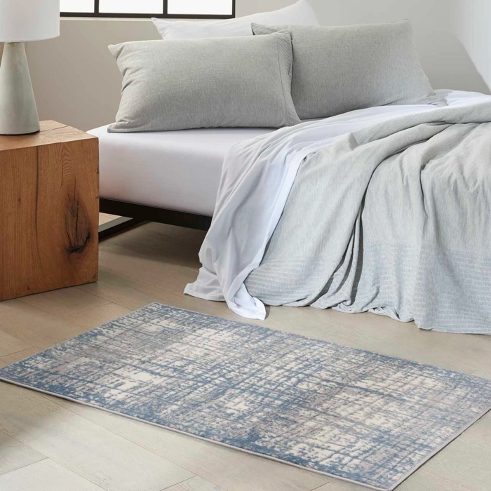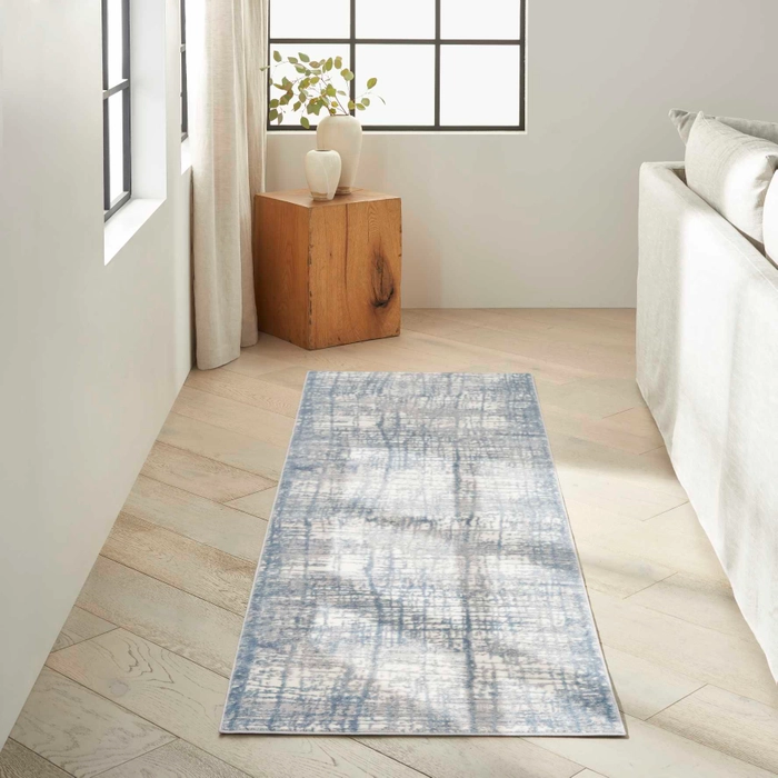 Neutral, natural tones meet fresh, contemporary design in this area rug from the Calvin Klein Rush Collection. High-low pile in a crosshatched, abstract design creates a sense of depth and interest. This is art you’ll love to live with, in a cool ivory and blue palate.