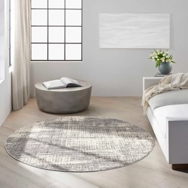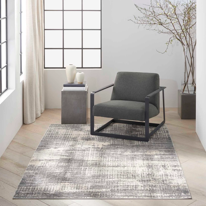 An abstract linear design and artfully textured surface give this Calvin Klein Rush area rug an urban edge perfect for the contemporary or eclectic home. Soft neutrals in grey and beige offer decorating versatility, while the power-loomed, high-low pile and easy-care polyester fibers add practicality.
