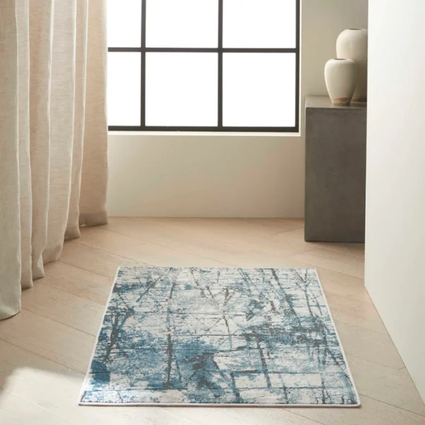 This ultra-modern area rug from the Calvin Klein Vapor Collection adds excitement to any contemporary room. The arresting design features powerful slashes of black, across an artfully blended blue and grey background. In a super-soft, easy-care, medium pile.