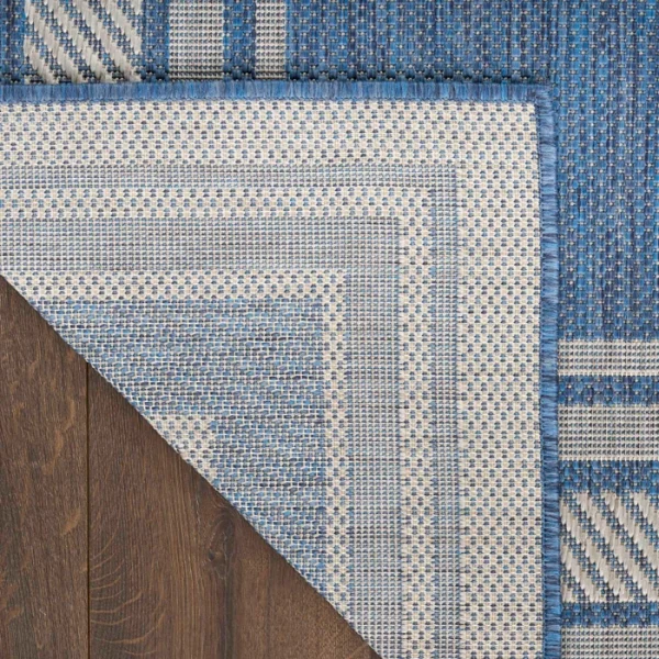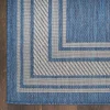Transform any space with this modern denim blue outdoor rug from the Horizon collection. Showcasing a striking bordered design, this rug beautifully frames your space while adding structure to patio conversation or living room and dining room seating areas. The two-tone palette, enhanced with subtle tonal variations, helps draw the eye while creating a focal point for your dcor. Made from a blend of polyester and polypropylene finished with a subtle high-low pile.