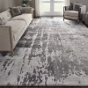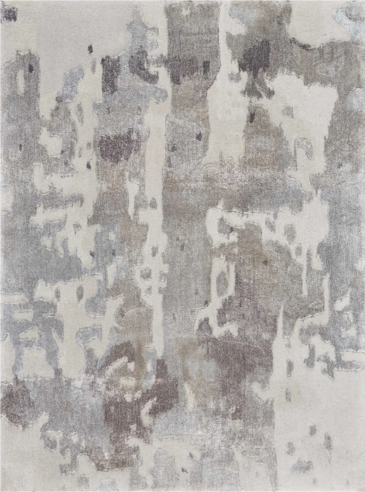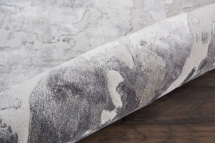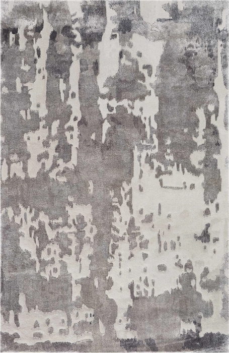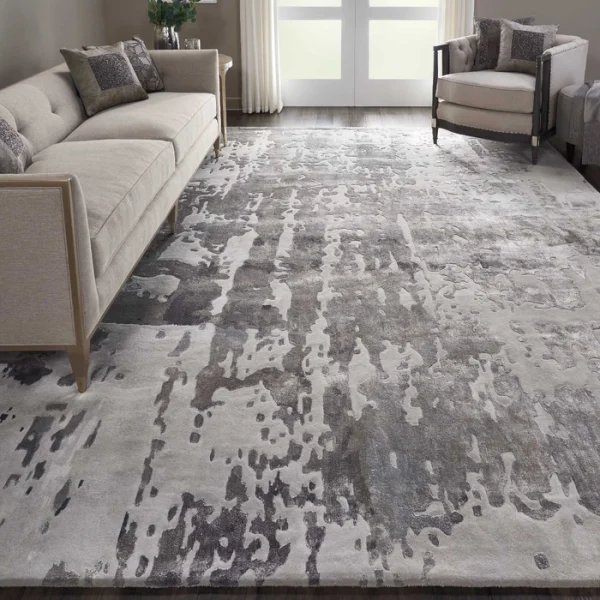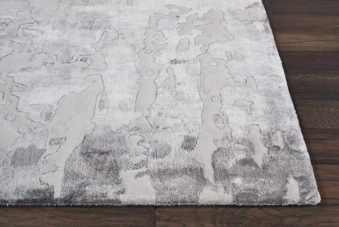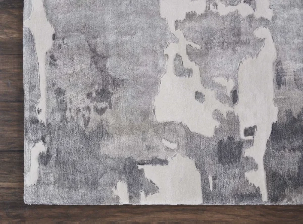 This amazingly artistic rug could adorn a wall as easily as a floor! Elegant silver and grey tones flow in simulated brush strokes that make a stunning design statement. This hand-tufted rug features a thick, luxurious pile, carved for added dimension and texture for the perfect combination of durability, comfort, and artistic appeal.