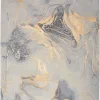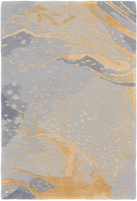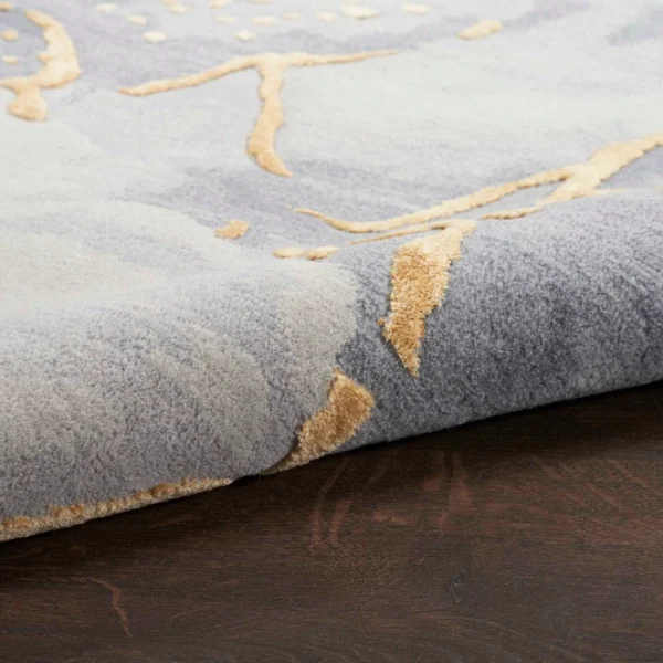 With its nebulous design, this abstract rug from the Prismatic Collection brings cosmic energy to your surroundings. Layers of soft grey are highlighted by swirls of carved golden yellow accents that add a striking level of dimension. Handmade from a blend of fine New Zealand wool and shimmering, silk-like Luxcelle for lasting comfort and exquisite style.