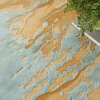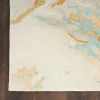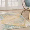 Express your unique style with this abstract rug from the Prismatic Collection. Splashes of blue and gold, enhanced with carved textural accents and an eye-catching sheen, create a stunning focal point for your living room or bedroom decor. This modern rug is handmade from a blend of fine New Zealand wool and shimmering Luxcelleâ„¢ yarns in a comfortable, medium-thick pile that adds an instant layer of warmth.