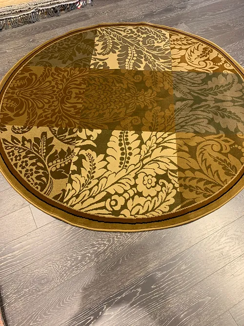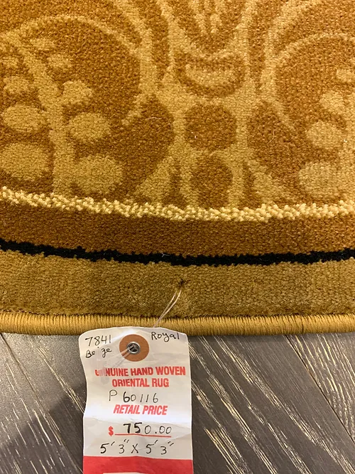 This is a beautiful machine made rug made in Turkey. The material is Polypropylene and Jute pile. The color is Beige/brown. The size is 5’ 3” x 5’ 3”. The shipping is within mainland USA. Outside of USA please inquire about shipping before purchasing this rug.