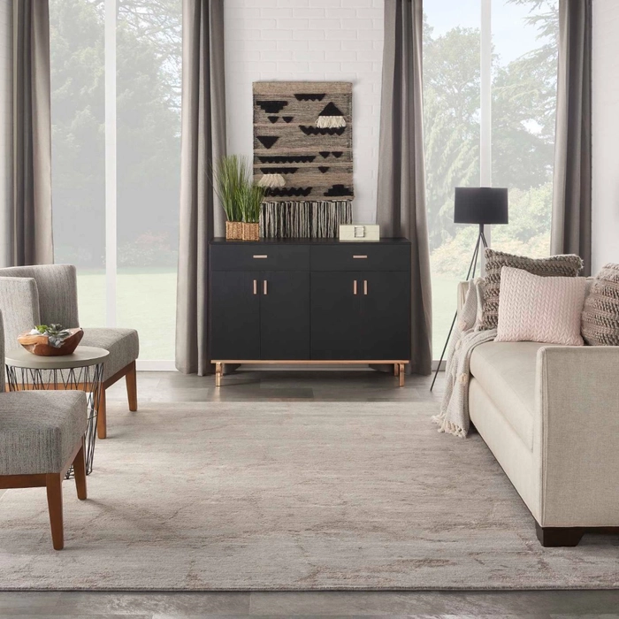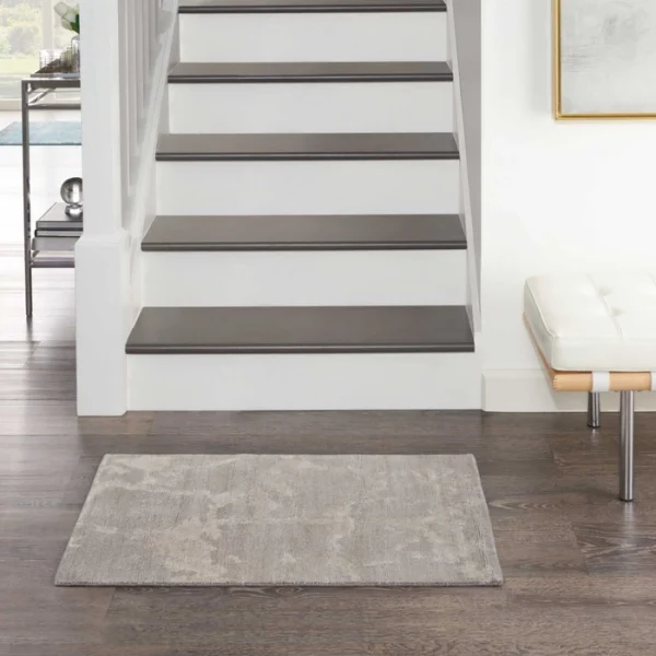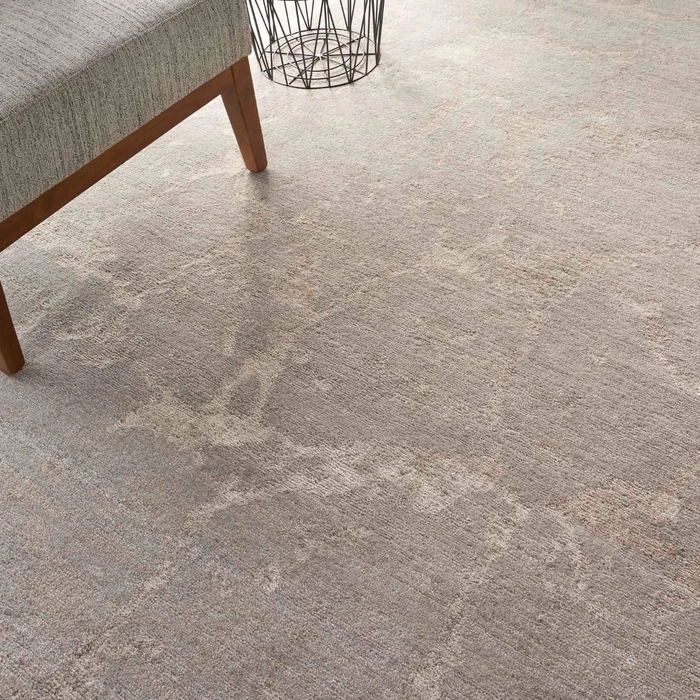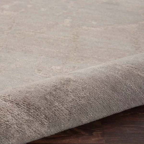 An abstract free-form design really shines when rendered in striking shades of silver with a dramatic ombre effect. Replete with a sensuous fabrication, unsurpassable texture and tone and suffused with a gentle iridescence, this outstanding hand-woven rug is indisputably impactful.