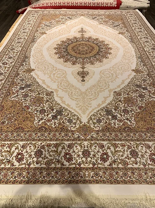Here we are offering a beautiful machine made area rug made in Turkey. The material is natural bamboo silk. The shipping is for mainland USA. Outside of USA please inquire about shipping before purchasing this rug.