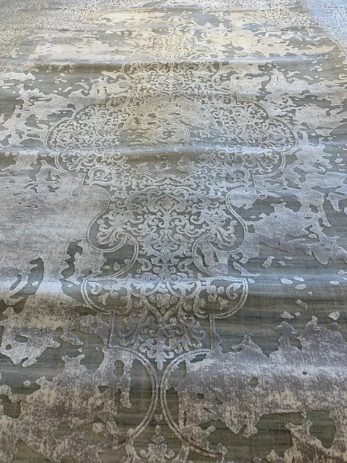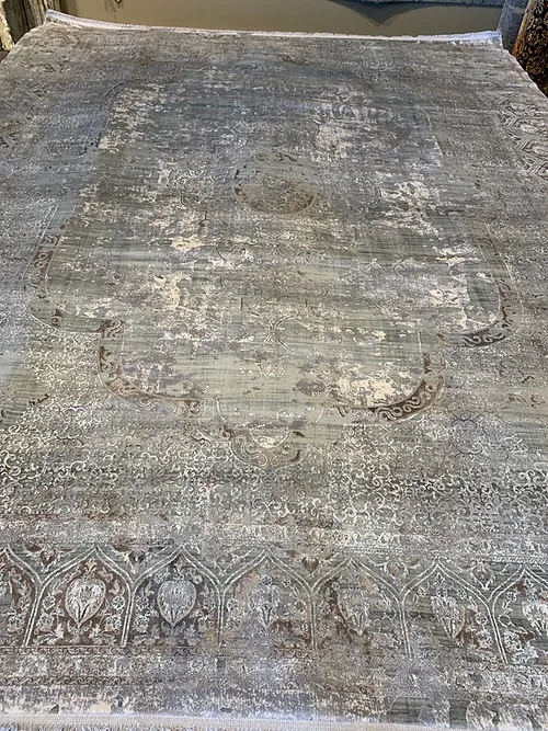This is a very fine machine made rug. The country of origin is Turkey. The material is bamboo pile. The size is 8×10 or 240cm x 305cm. The colors are light grey and Blue. The shipping is for mainland USA. Outside of USA please inquire about shipping before purchasing this rug.