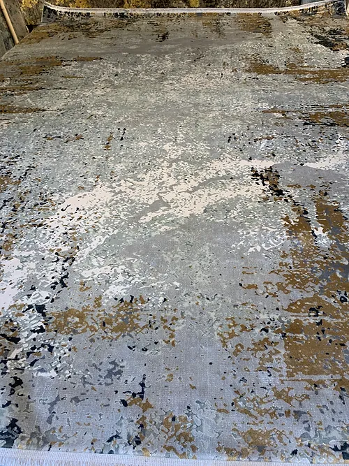 This is a very fine machine made rug. The country of origin is Turkey. The material is bamboo pile. The size is 8×10 or 240cm x 305cm. The colors are light grey and Anthracite. The shipping is for mainland USA. Outside of USA please inquire about shipping before purchasing this rug.