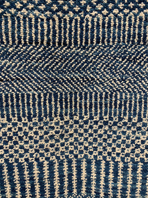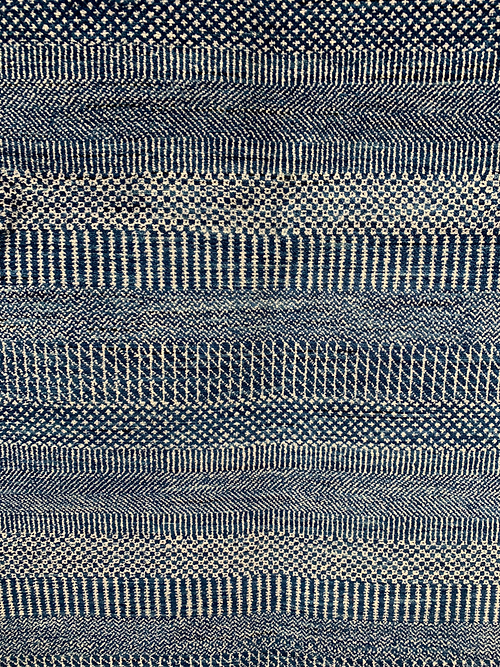 This is a hand knotted wool rug made in India. The size is 10’ 1” x 8’ 2”. The colors are navy /grey. The shipping is for within mainland USA. Outside of USA please inquire about the shipping before purchasing this rug .