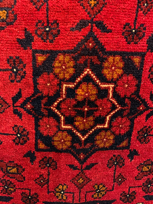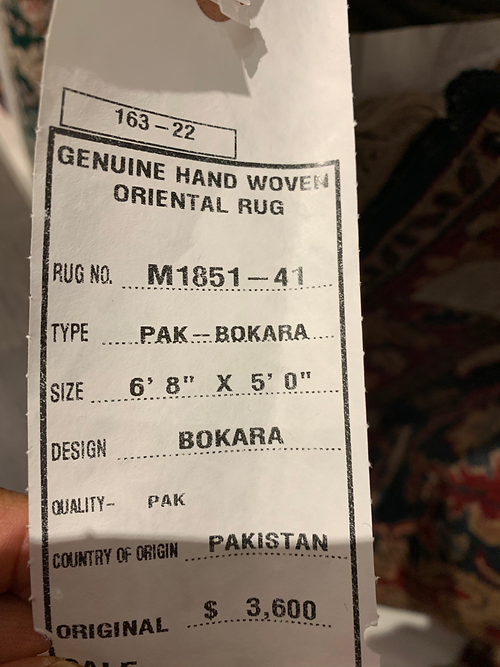 This is a hand knotted Bokara design made in Pakistan. The material is wool pile on cotton foundation. The size is 6’ 8” x 5’. The color is red/ Navy. The shipping is for mainland USA. Outside of USA please inquire about shipping before purchasing this rug.