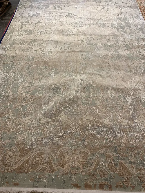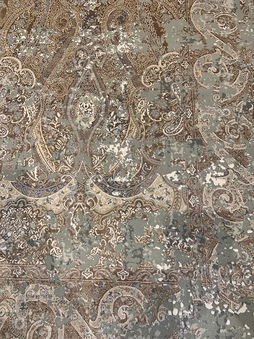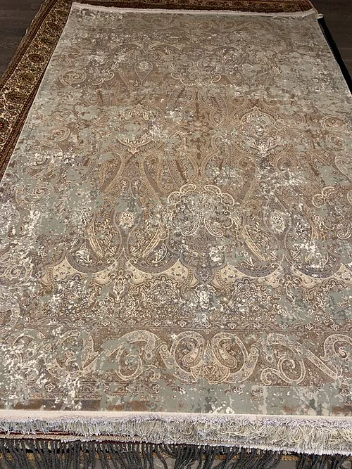 This is very fine machine made rug. It is made in Turkey. The material is 100% Bamboo silk . In rug industry the quality is measured by 2 million points per square meter. The colors are grey, brown. The size is 5’x8’. The shipping is within mainland USA. Outside of USA please inquire about shipping before purchasing this rug.
