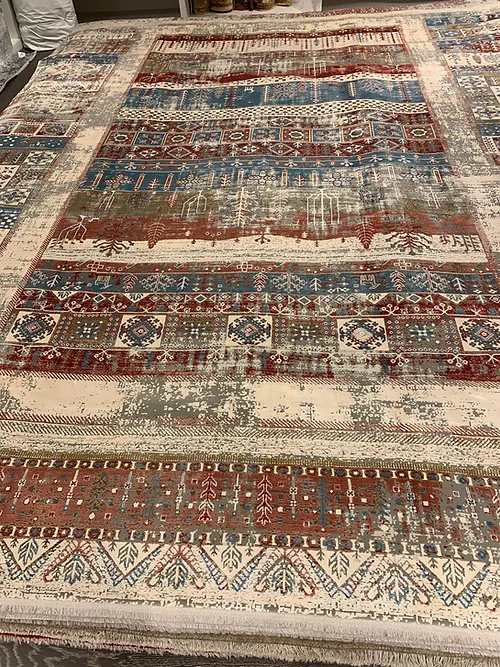 Here we are offering a very nice machine made knotted rug modern design Artos (ART013). The material is 55% Viscose 45% Acrylic. The country of origin is Turkey.