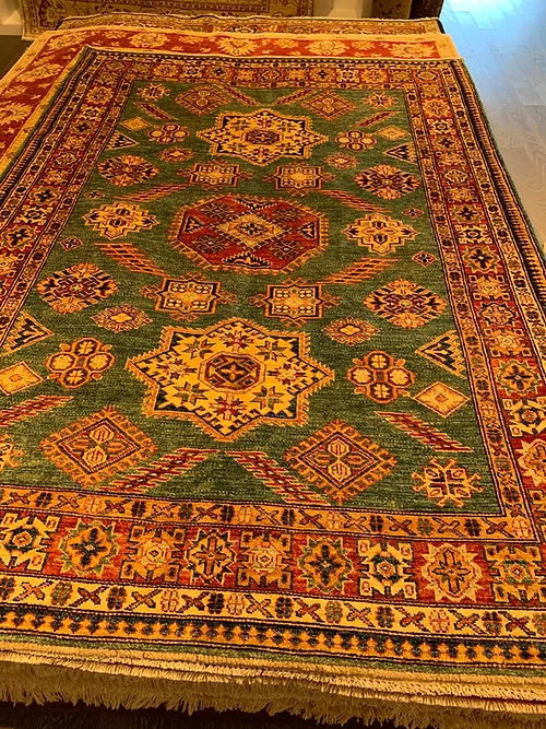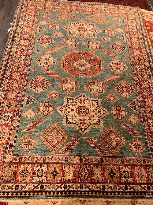 This is a fine hand knotted rug. The design is called Oushak. It is made in Pakistan.The material is 100% wool pile. The background is Rust with Ivory border. The size is 4’ 10” x 7’ 0”. The shipping is within USA. Outside of USA please inquire about shipping before purchasing this rug