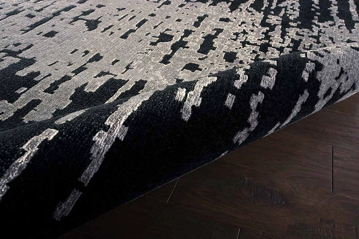 A strong abstract design has a digitized feel that gives this superbly modernist rug an ultra-contemporary edge. Profoundly handsome in darkly luminous tones of flint on charcoal. Bring dramatic impact to your room with this centerpiece textile.