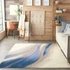 This exceptional artistic rug from Nourison’s Twilight Collection features waves of navy blue and silver grey across an ivory white field for a modern beach interior aesthetic. The low-cut pile features luxurious texture with wool and Luxcelle fibers that create a tempting silky surface, with a hint of glistening accents for extra energy and life. This rug adds an immediate dose of contemporary charm wherever it goes!